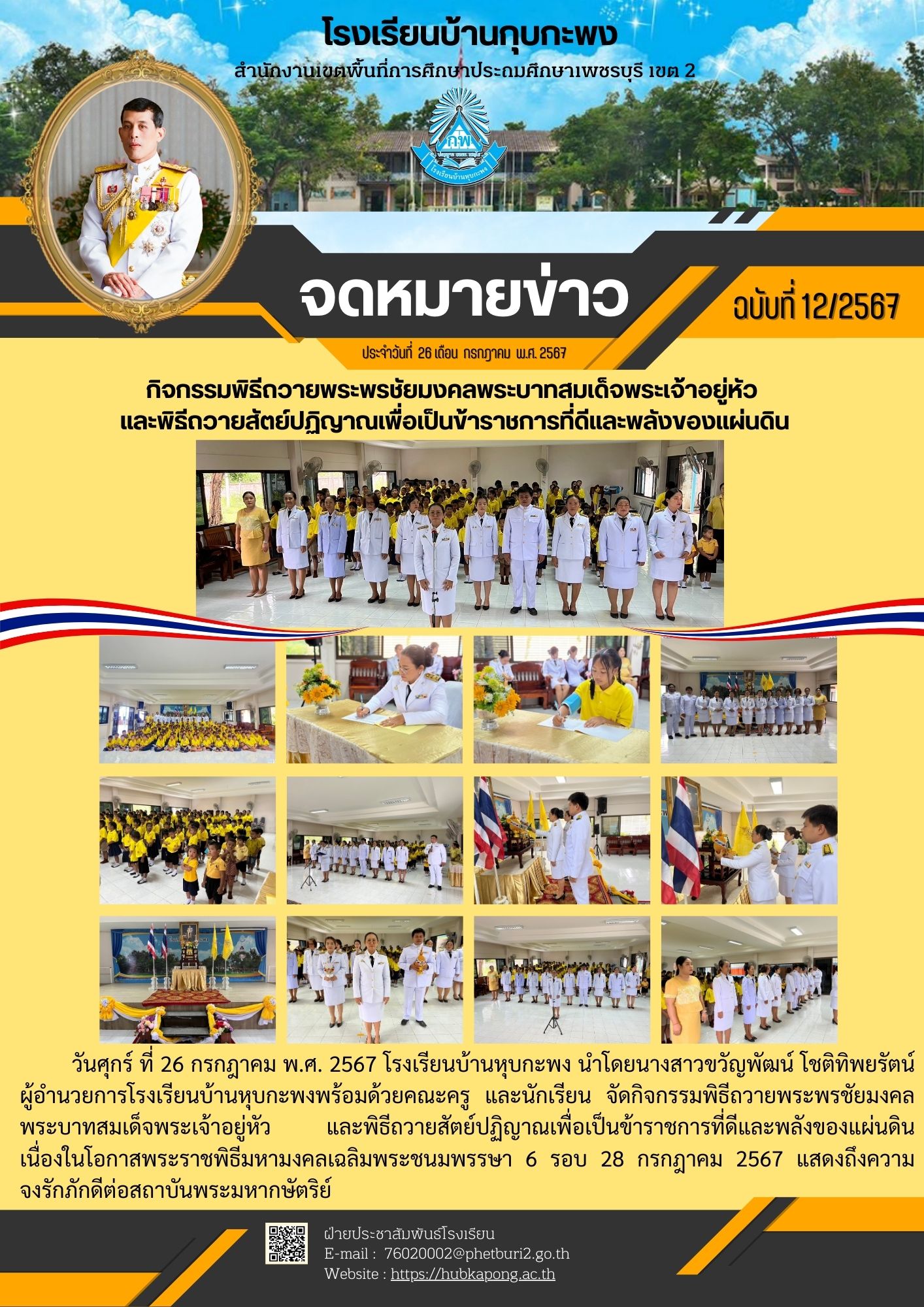 กิจกรรมพิธีถวายพระพรชัยมงคลพระบาทสมเด็จพระเจ้าอยู่หั